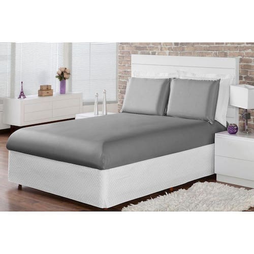 Jogo De Lençol King 3 Peças Com Elástico Cor CinzaJogo de lençol king size03 peçasTamanho: super kingLençol com elástico em toda extremidade para melhor fixação no colchãoToque macio140 fiosDispensa passarCores lisasMedidas:Lençol: para colchão king com até: 2,05m compr. X 1,93m larg. X 0,38m alt.Fronha: 70cm x 50cmNome do tecido: micro-fibra 140 fiosComposição: 100% poliésterContém na embalagem:01 - lençol king com elástico02 - fronhasEquipe shopping home enxovais Marca: Shopping Home