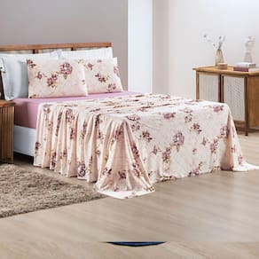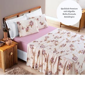 Jogo de Lençol King 4 peças 100% Algodão Malha Penteada Quality - Rosê