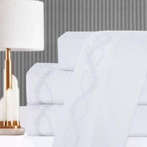 Jogo De Lençol King Bordado 300 Fios Romance - 4 Peças Cor Brancoo