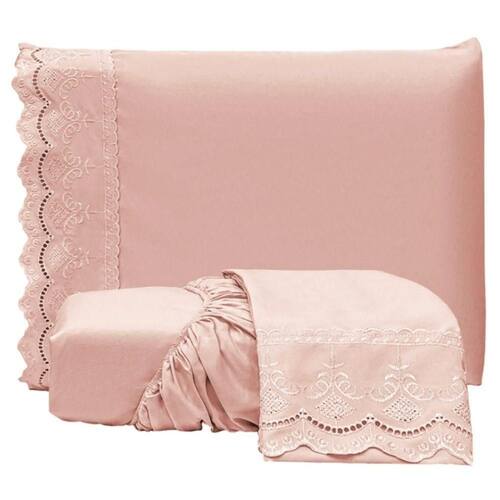 O Jogo de Lençol ;traz a elegância do bordado ;inglês, é confeccionado em tecido ;micropercal ;300 Fios 100% Poliéster, ;um tecido de grande qualidade e alta durabilidade, ;possui ;toque super macio e suave, ;trazendo conforto, praticidade e qualidade para a sua cama.