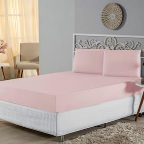 Jogo De Lençol King Malha 100% Algodão 3 Peças Cor Rosa