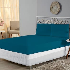 Jogo de Lençol King Malha 100% Algodão 3 Peças - Petroleo - Única
