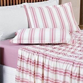 Jogo De Lençol King Marim Malha 100% Algodão Estampado 4 Peças Rose - Rosa