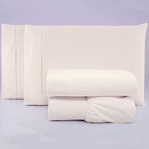Apresentamos nosso Jogo de Lençol Ponto Palito, confeccionado com Tecido Percal 200 Fios 100% Algodão, o lençol de cima possui um lindo acabamento em ponto palito, lençol de baixo com elástico em toda a volta, o jogo de lençol tem toque leve e macio, trazendo conforto, praticidade e qualidade para a sua cama.