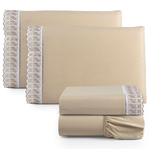 Além disso, o lençol apresenta um barrado de lese que acrescenta um toque de sofisticação e charme à sua cama. O barrado de lese, com seus delicados desenhos e detalhes rendados, eleva o design do lençol, transformando-o em uma peça única que reflete o bom gosto e a atenção aos detalhes.