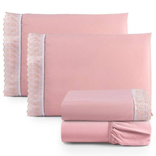 Além disso, o lençol apresenta um barrado de lese que acrescenta um toque de sofisticação e charme à sua cama. O barrado de lese, com seus delicados desenhos e detalhes rendados, eleva o design do lençol, transformando-o em uma peça única que reflete o bom gosto e a atenção aos detalhes.