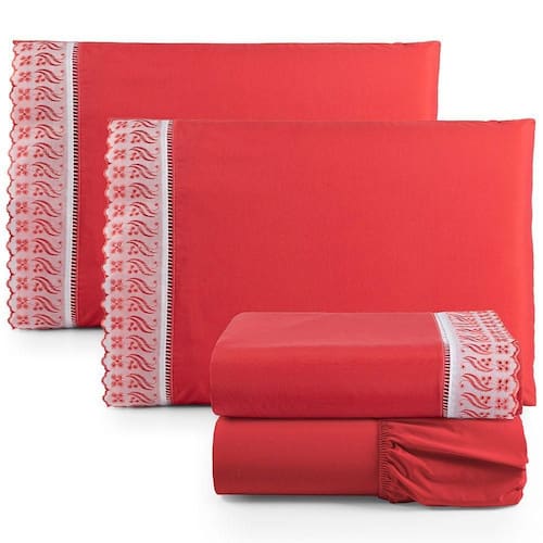 Além disso, o lençol apresenta um barrado de lese que acrescenta um toque de sofisticação e charme à sua cama. O barrado de lese, com seus delicados desenhos e detalhes rendados, eleva o design do lençol, transformando-o em uma peça única que reflete o bom gosto e a atenção aos detalhes.