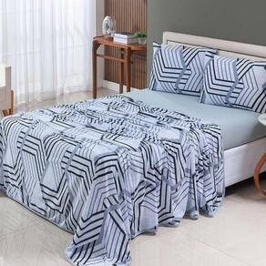 Jogo De Lençol Luar King 4 Peças Malha 100% Algodão Estampado - Cinza Geométrico