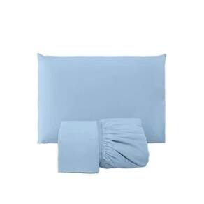 Jogo De Lençol Micropercal 400 Fios Liso Cama Queen 3 Peças - Azul bebê