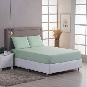 Jogo De Lençol Minimal Casal 3 Peças Malha 100% Algodão Liso Verde