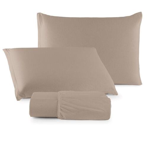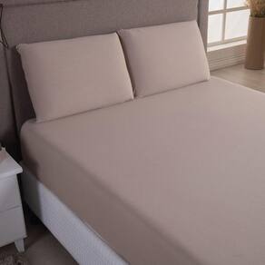 Jogo De Lençol Minimal Queen 3 Peças Malha 100% Algodão Liso Bege