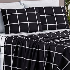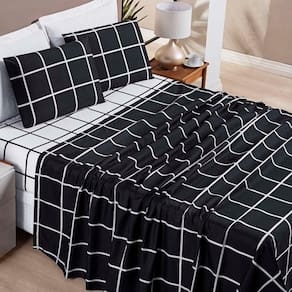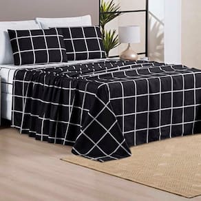 Jogo De Lençol Minimalista Queen 4 Peças Percal 200 Fios Quadriculado - Preto - 100% Poliéster