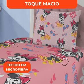 Jogo de Lençol Personagens Minnie Solteiro 2 Peças 100% Poliéster Microfibra Toque Macio Rosa