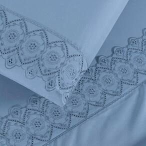 O Bordado Inglês exclusivo é mais do que um detalhe estético; é um testemunho da qualidade artesanal e da atenção aos detalhes que garantem a durabilidade e o charme contínuo deste jogo de cama.