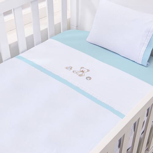Características: - Contém 03 Peças - 01 Fronha: 28 cm x 40 cm - 01 Lençol com Elástico Liso: 70 cm x 1,30 m x 15 cm - 01 Lençol de Cima Bordado: 90 cm x 1,50 m - Tecido: 100% Algodão - Elástico nas Laterais - Ideal para Colchões de até 15 cm - Marca: Bublim