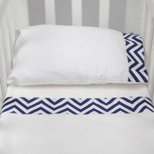 Jogo De Lençol Para Mini Berço 3 Peças Chevron Azul Marinho