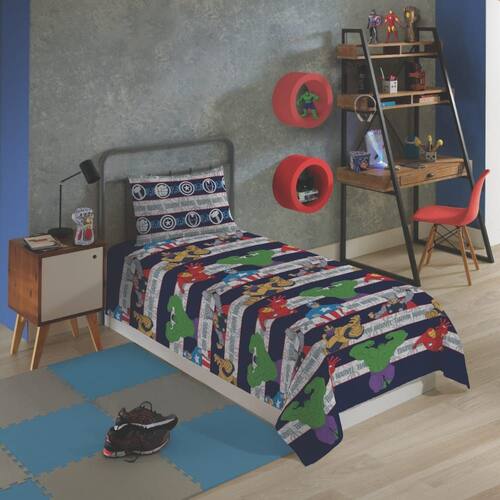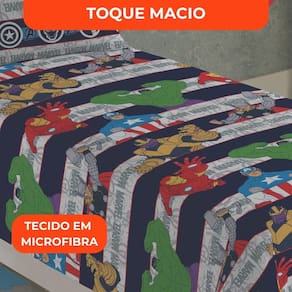 Características: -Coleção: Lepper Kids -Composição: 100% Poliéster -Estampa: Avengers -Fabricante: Lepper -Gramatura: 65g/m² -Amassa Menos -Não Precisa Passar -Seca + Rápido -Serve em cama box