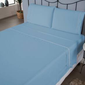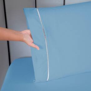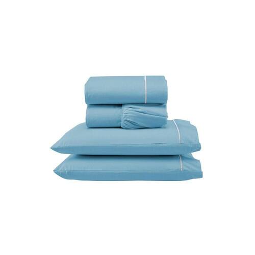 Jogo De Lençol Ponto Palito Completo 4 Peças Queen 80% Algodão - 20% Poliéster Percal 140 Fios Cor:azul