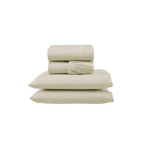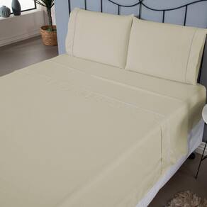 Jogo De Lençol Ponto Palito Completo 4 Peças Queen 80% Algodão / 20% Poliéster Percal 140 Fios Cor:palha