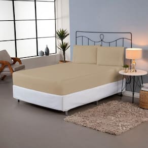 Jogo De Lençol Ponto Palito Simples 3 Peças Queen 80% Algodão - 20% Poliéster Percal 140 Fios Cor:cáqui