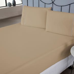 Jogo De Lençol Ponto Palito Simples 3 Peças Queen 80% Algodão / 20% Poliéster Percal 140 Fios Cor:cáqui