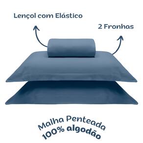 O que vem na Embalagem: 01 lençol debaixo com elástico Tamanho: Queen Size (colchões de 1,58m x 1,98m x 35cm) 02 Fronhas Avulsas Tamanho: 50cm x 70cm