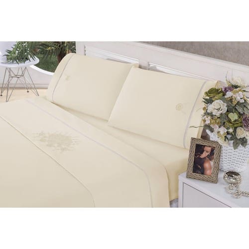 Jogo De Lençol Queen 4 peças Ponto Palito Bordado Crivo 100% algodão Contém: 04 peças 01 Lençol de Cima - 2,60 x 2,30 01 Lençol Baixo com Elástico - 1,98 x 1,58 x 30cm de altura 02 Fronhas 70cm x 50cm Composição: 100% Algodão Percal 150 fios Detalhe: Bordado com Ponto em Crivo Acabamento em Ponto Palito Marca: Nathalia Enxovais