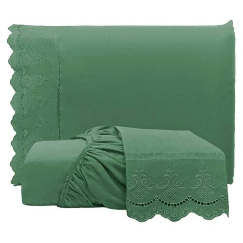 O Jogo de Lençol traz a elegância do bordado inglês, é confeccionado em tecido micropercal 300 Fios 100% Poliéster, um tecido de grande qualidade e alta durabilidade, possui toque super macio e suave, trazendo conforto, praticidade e qualidade para a sua cama.