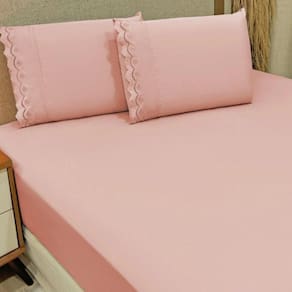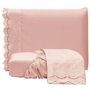 Jogo De Lençol Queen Bordado Ingles Micropercal 300 Fios Toque De Algodão 3 Peças - Rose - Rosa