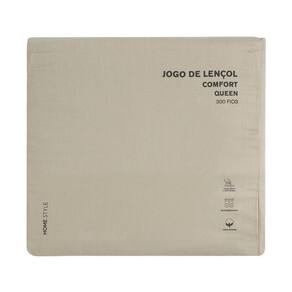 De maciez incomparável, o Jogo de Lençol Queen Comfort vai transformar seu momento de descanso. Fabricado 100% em algodão, 300 fios. Por ter essa quantidade de fios tem maior resistência ao uso e cuidados diários, é mais macio e sedoso. Por ser feito em construção de cetim, traz um acabamento levemente brilhoso, acetinado. Com embalagem do próprio tecido, é um produto com menos uso de plástico, permitindo que a embalagem seja reutilizada para organização.