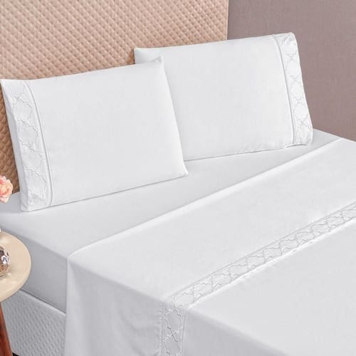 O Jogo de Cama para cama Queen com 04 peças confeccionado em Tecido Micropercal 300 Fios com detalhe Bordado com alto padrão de qualidade, proporciona conforto e sofisticação.