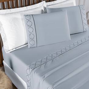 O Jogo de Cama para cama Queen com 04 peças confeccionado em Tecido Micropercal 300 Fios com detalhe Bordado com alto padrão de qualidade, proporciona conforto e sofisticação.
