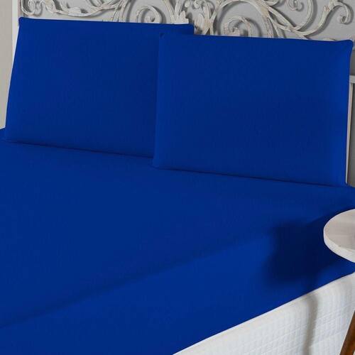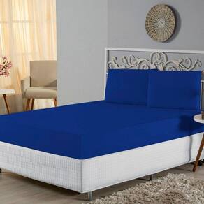 Jogo De Lençol Queen Malha 100% Algodão 3 Peças Cor Azul Royal - Única