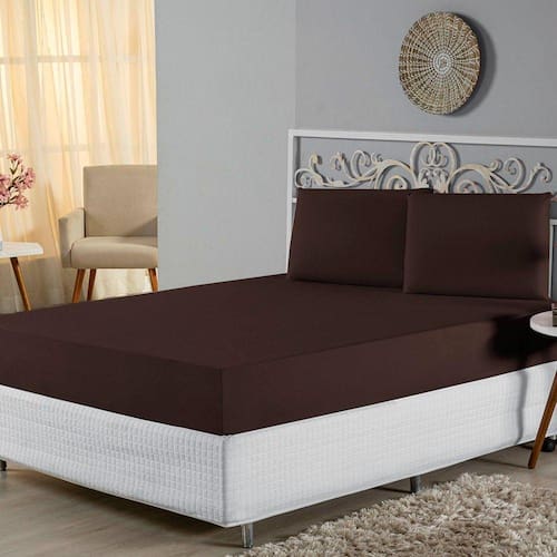 Jogo de Lençol Queen Malha 100% Algodão 3 Peças - Tabaco - Única
