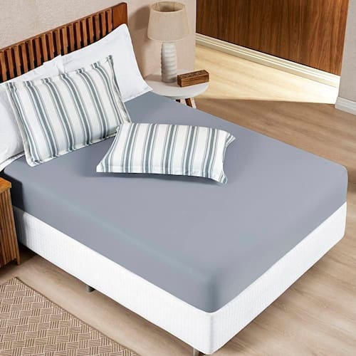 01 - Lençol de Baixo Liso com Elástico para Colchão de 1,98m x 1,58m x 30cm 02 - Fronha Estampadas 70cm x 50cm