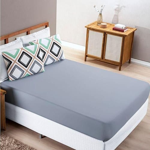 01 - Lençol de Baixo Liso com Elástico para Colchão de 1,98m x 1,58m x 30cm 02 - Fronha Estampadas 70cm x 50cm