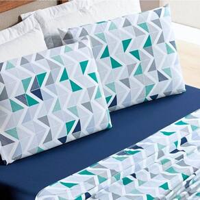 Jogo De Lençol Queen Quality Malha 100% Algodão Estampado 4 Peças - Geometrico Azul