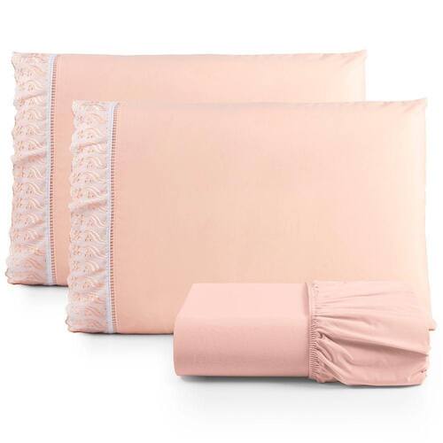 Além disso, o lençol apresenta um barrado de lese que acrescenta um toque de sofisticação e charme à sua cama. O barrado de lese, com seus delicados desenhos e detalhes rendados, eleva o design do lençol, transformando-o em uma peça única que reflete o bom gosto e a atenção aos detalhes.