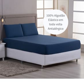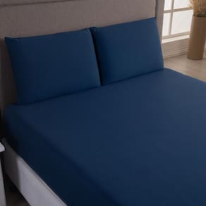 Jogo de Lençol Solteiro 2 peças 100% Algodão Malha Penteada - Azul Marinho