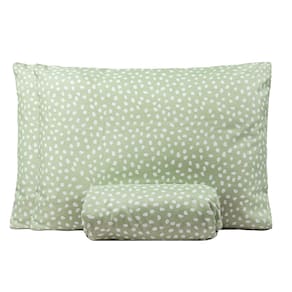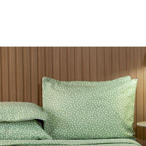 O conjunto também inclui duas fronhas com estampa, cada uma medindo 0,5 metros de largura por 0,7 metros de comprimento.