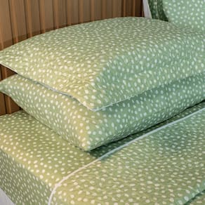 O conjunto inclui um lençol de baixo com estampa, adequado para colchões de solteiro, com dimensões de 90cm de largura, 1,88 metros de comprimento e 25 centímetros de altura. O elástico garante um ajuste seguro ao colchão.