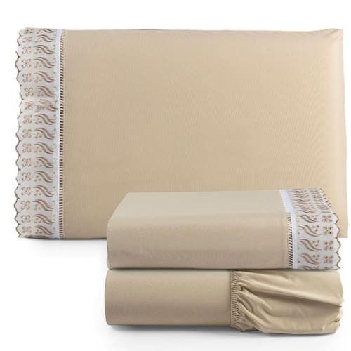 Jogo De Lençol Solteiro 3 Peças Basic Percal 180 Fios Lese Bordado Inglês - Avelã
