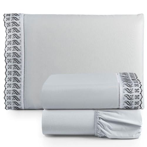 Jogo De Lençol Solteiro 3 Peças Basic Percal 180 Fios Lese Bordado Inglês - Cinza