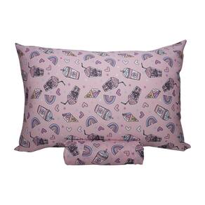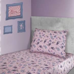 Jogo de Lençol Solteiro KazzaVip Malha Misto 70% Algodão e 30% Poliéster Estampado com Elástico 2 Peças Milk Skake Rosa