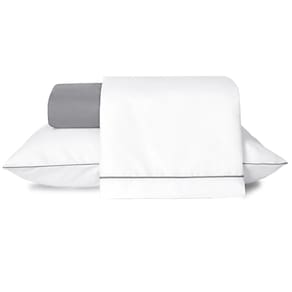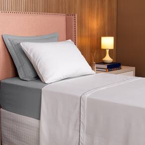 O kit conta com fronha e sobre lençol na cor branca. A fronha possui fechamento em envelope, o que facilita a retirada para lavagem. O jogo também acompanha um lençol com elástico nas 04 laterais.