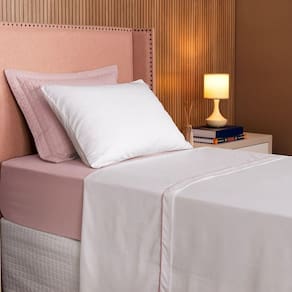 O kit conta com fronha e sobre lençol na cor branca. A fronha possui fechamento em envelope, o que facilita a retirada para lavagem. O jogo também acompanha um lençol com elástico nas 04 laterais.