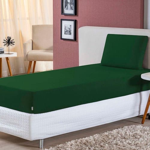 Jogo De Lençol Solteiro Malha 100% Algodão 2 Peças - Verde Bandeira