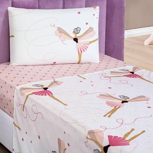 Especificações Produto: Jogo de lençol Tamanho: Solteiro Coleção: Fantasy Modelo: Bailarina Composição: Tecido 100% poliéster Medidas do lençol de baixo: 90 cm x 1,90 m x 30 cm Medidas do lençol de cima: 2,50 x 1,50 m Medidas da fronha: 70 x 50 cm