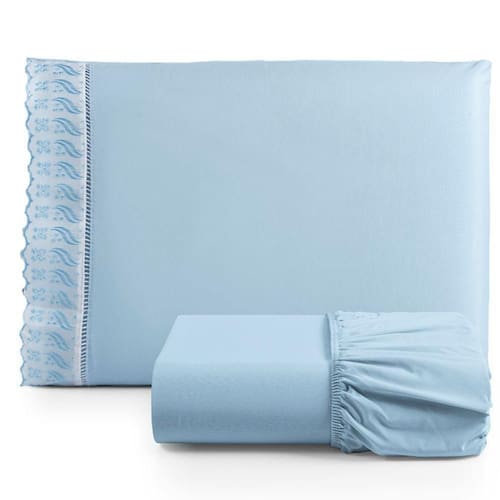 Jogo De Lençol Suave Lese Percal 180 Fios Solteiro 2 Peças Barato - Azul