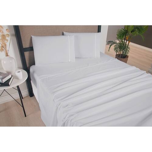 Jogo de Lençol Versatile Ponto Palito Completo 4 Peças King 100% Poliéster Micropercal 300 Fios.Contém na Embalagem:01 Lençol sem elástico (de cima): 2,40m comp. x 2,80m larg.;01 Lençol com elástico: 2,03m comp. x 1,93m larg. x 40cm alt.;02 Fronhas: 70cm comp. x 50cm larg.Material e Composição: Tecido 100% Poliéster - Micropercal 300 Fios.ATENÇÃO!A tonalidade da cor pode variar de acordo com cada tela de dispositivo.Informações Específicas:- Versatilidade: se adapta a diferentes estilos de decoração e ambientes, garantindo uma harmonia visual em qualquer quarto de casal;- Conforto superior: fabricado com tecido 100% poliéster micropercal de 300 fios, proporciona um toque suave e macio, garantindo noites de sono tranquilas e confortáveis;- Detalhe ponto palito: adiciona um charme extra ao conjunto de lençóis, conferindo um visual elegante e sofisticado à cama;- Durabilidade: a alta qualidade do material e a construção cuidadosa garantem a durabilidade do jogo de lençol, mantendo sua beleza e integridade mesmo após múltiplas lavagens;- Praticidade: composto por quatro peças essenciais, sendo: lençol de cima + lençol de baixo + fronhas, o conjunto oferece praticidade na hora de vestir a cama e facilita a rotina de cuidados com a roupa de cama.Instruções de Lavagem:- Temperatura máxima de lavagem: 40ºC;- Não alvejar, não branquear;- Não secar em tambor;- Secagem em varal à sombra;- Temperatura máxima da base do ferro de 110ºC sem vapor;- Não limpar a seco.